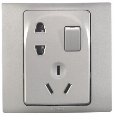 深砂银二三极带开关插座 额定电流10A 额定电压250V,轻薄的设计使底盒有充足的空间。优化的蜂窝增强结构,增强了固定架安装受力,确保产品安装使用更稳定。插座接触片采用优良铜材,导电性能良好,强度高,弹力持久,受力平衡,插拔次数可达10000个行程。插座保护门采用精巧结构设计,防止单极插入,功能件一体化,保障用电安全。