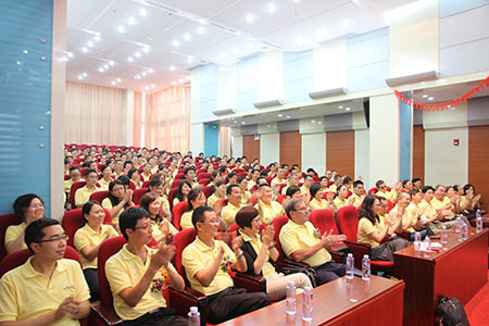 在这次大会上总经理首先祝贺了公司上半年同比增长11.3%,这是属于全公司优秀的成绩。同时再次强调了公司的“一致性”,希望从上到下的每一位员工都明确的了解公司的愿景、战略及行动计划,让每位员工有参与感和使命感,为我们下个辉煌20年扬帆。