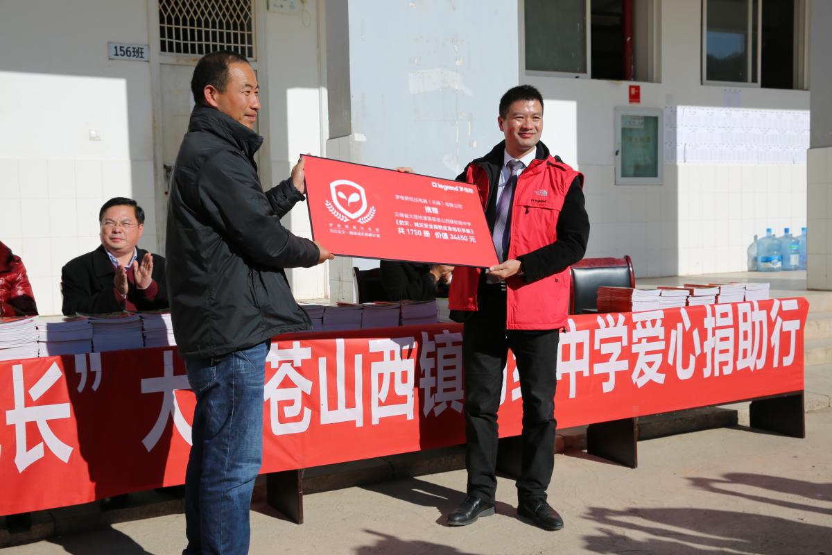 一个月以前,罗格朗低压电器(无锡)有限公司2015年销售及经销商联合年会确定在大理举行,既已千里赴会,就当有所作为,一番思量过后,公司高层决定让策划已久的安全公益系列活动在大理落地。于是,公司迅速与大理州妇联取得联系,经过一番考察,最终选定向漾濞彝族自治县苍山西镇初级中学捐赠《防灾、减灾安全预防应急知识手册》共1750册。这一读物是国家针对自然灾害频发的地区专门编制的安全预防应急科普图书,要求中小学校学生人手一册,用以提高儿童安全意识和预防应急能力,安全健康地成长。