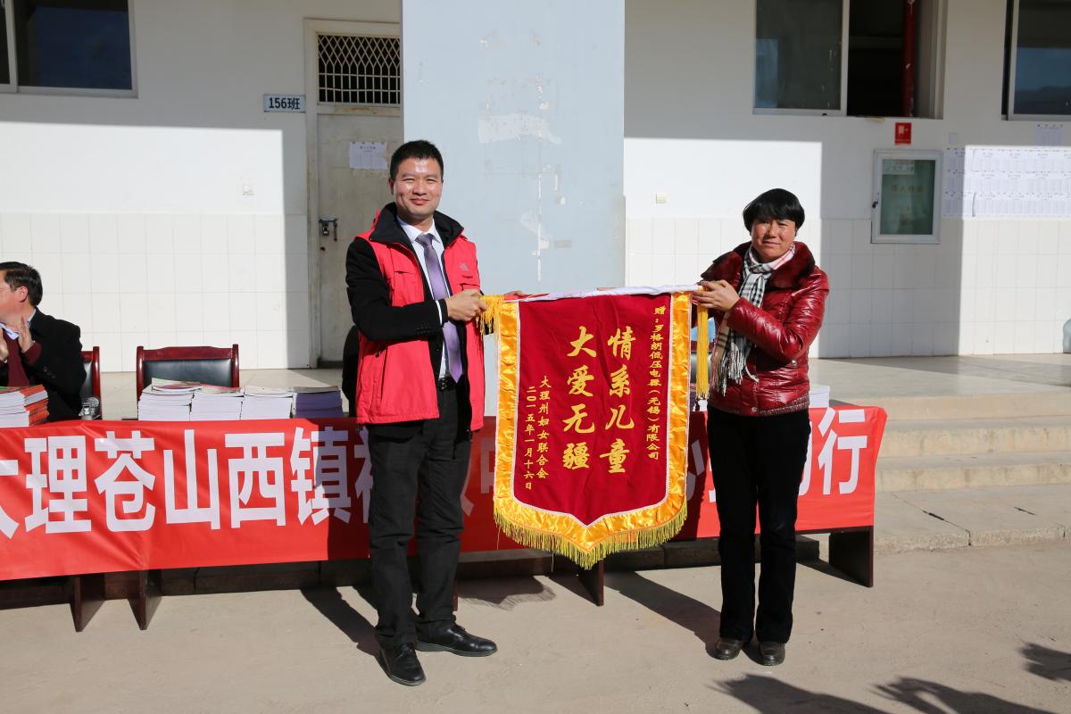 下午4时,图书捐赠仪式在苍山西镇初级中学内举行,州妇联、县妇联、县教育局及苍山西镇初级中学600余名学生出席捐赠仪式。罗格朗低压电器(无锡)有限公司副总经理黄夕兵先生作为企业代表首先发言,他表示,作为一家与电力安全相关的企业,罗格朗低压电器时刻关注安全话题,此次参与捐赠安全教育科普图书,意在增强学生的安全意识,提高学生的预防应急能力,在遇到危险时能够紧急自救,避免受到伤害。漾濞县副县长金勇先生在仪式上做答谢词,大理州妇联主席焦映女士向公司赠送“情系儿童·大爱无疆”锦旗。最后,公司代表与当地官员一同为现场600名学生发放捐赠书籍,让学生能够在假期里与家人和伙伴们一同分享图书。