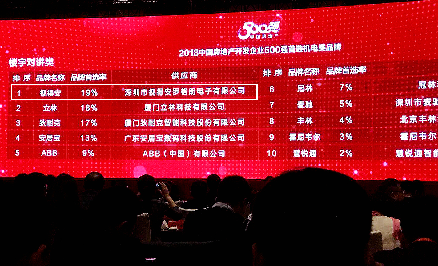 罗格朗再次蝉联“2018中国房地产开发企业500强品牌•楼宇对讲类第一名”!
