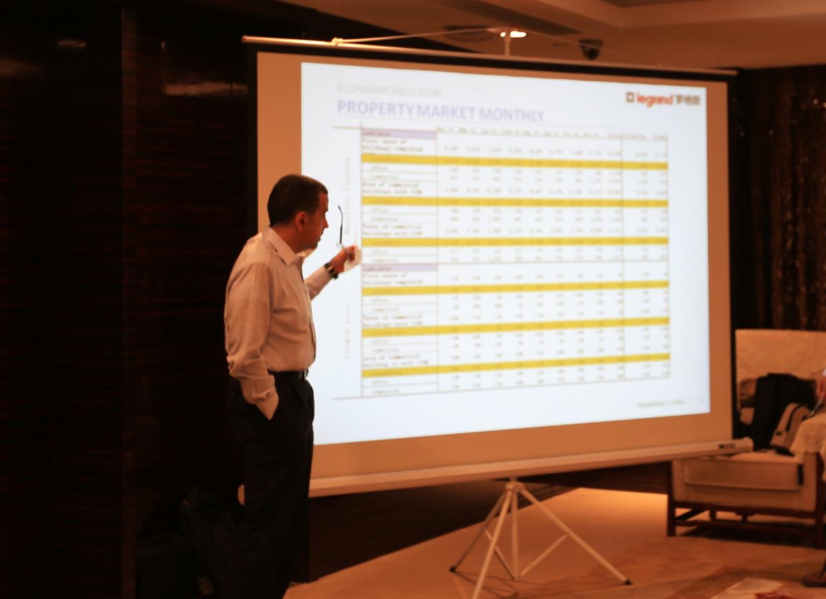 会议开篇,公司总经理Andrea先生就当前的地产行业及家居建材行业市场行情与在座经销商进行了分享。2015年第一季度,整个行业呈现疲软态势,就地产行业而言:房产产品“库存”在持续上升,同时销售面积、销售金额及销售价格同比回落,整个行业处于“去库存”化阶段。地产行业竞争将持续并加剧,同时行业间的合作及兼并将成为趋势;迫于库存、成本及资金压力,对利润的诉求将会传导至上游供应商,罗格朗低压电器作为电气元供应商也会面临更激烈的市场竞争以及更苛刻的付款条件。面对如此艰难的市场局面,公司应采取何种策略来应对呢?