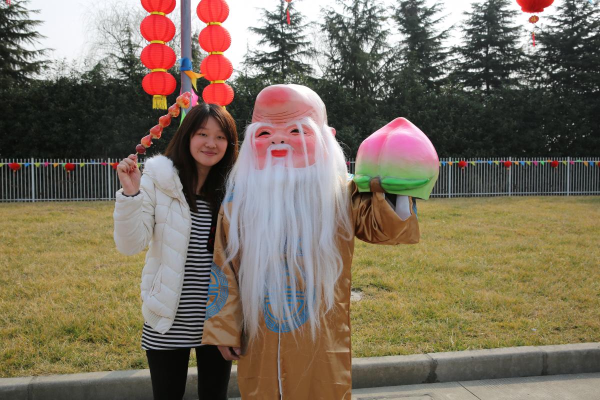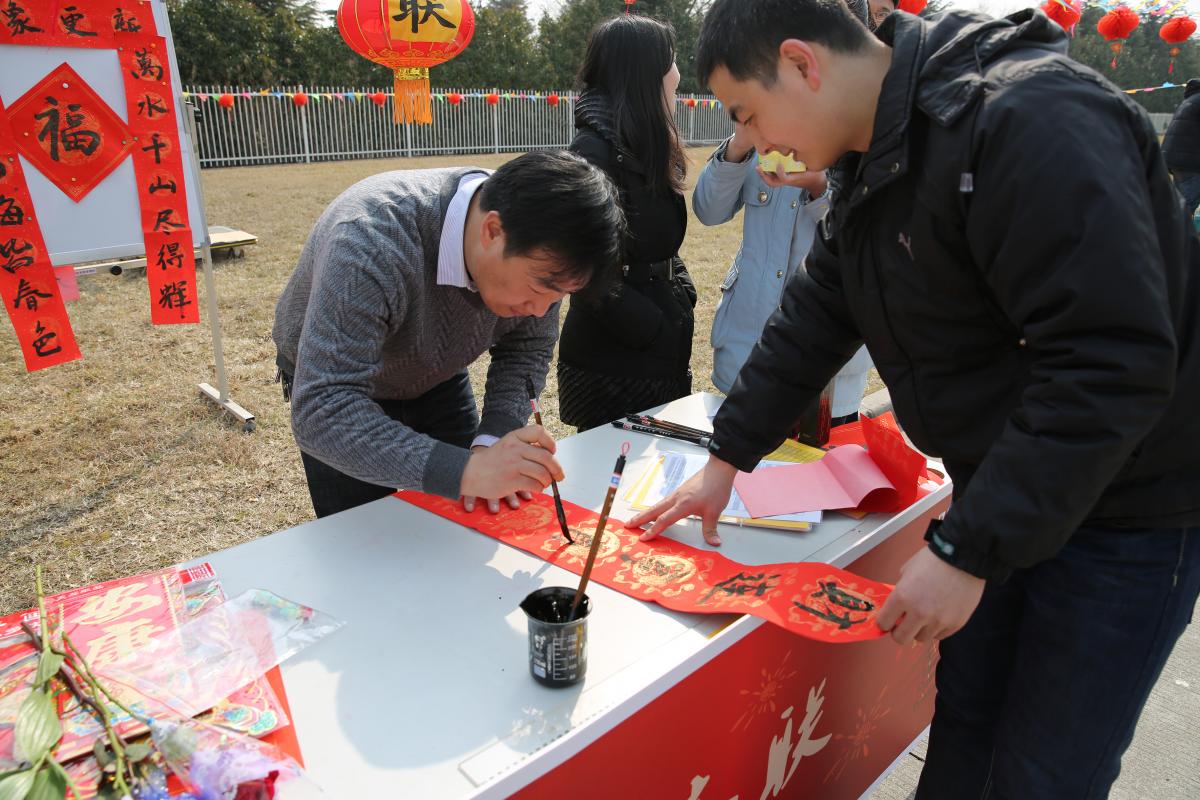 庙会当然少不了传统民俗,锣鼓声声唤来金龙狂舞,雄狮相戏;福、禄、寿手捧如意、元宝、仙桃传递美好祝福;旱船,跑驴,老汉背妻等传统表演引得大家欢笑连连。看过瘾了还要讨些喜气,写春联的摊位早已被人海重重包围,品控部员工大秀书法,这亲笔写的春联可更有年味儿。