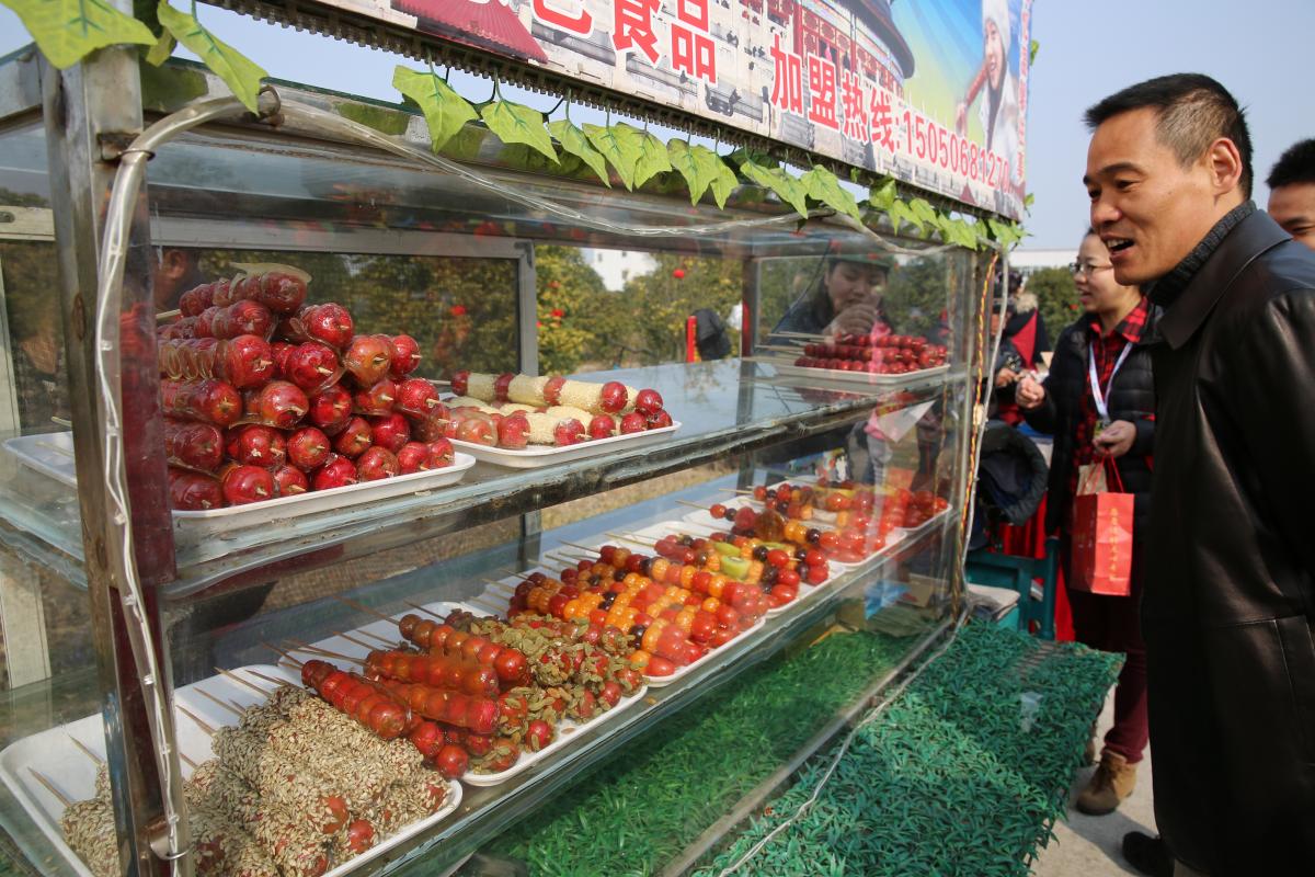 上午10时,新年庙会活动准时开始,公司厂区内一条300多米长的主干道两侧满是火红的灯笼和热闹的摊贩,包括冰糖葫芦、天津麻花、画糖人、豆腐花、烤羊腿、关东煮、爆米花、酒酿圆子等24种特色美食分别由各部门“承包”,从原料采购到现场烹制,都经品控部专人监督完成。员工及家属在现场凭券免费品尝食物,一时间,厂区内香飘四溢。