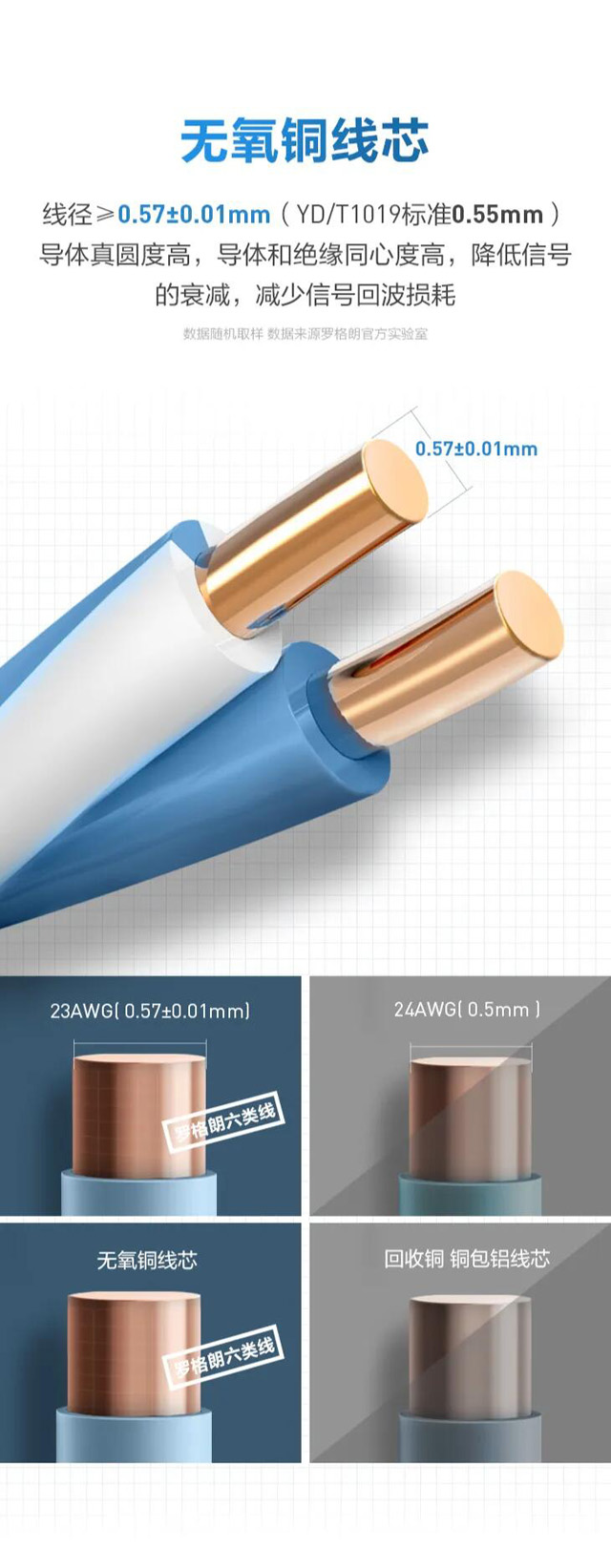 1、导体(铜芯)一般采用无氧铜制作,导体真圆度高,导体和绝缘同心度高,降低信号的衰减,减少信号回波耗损。