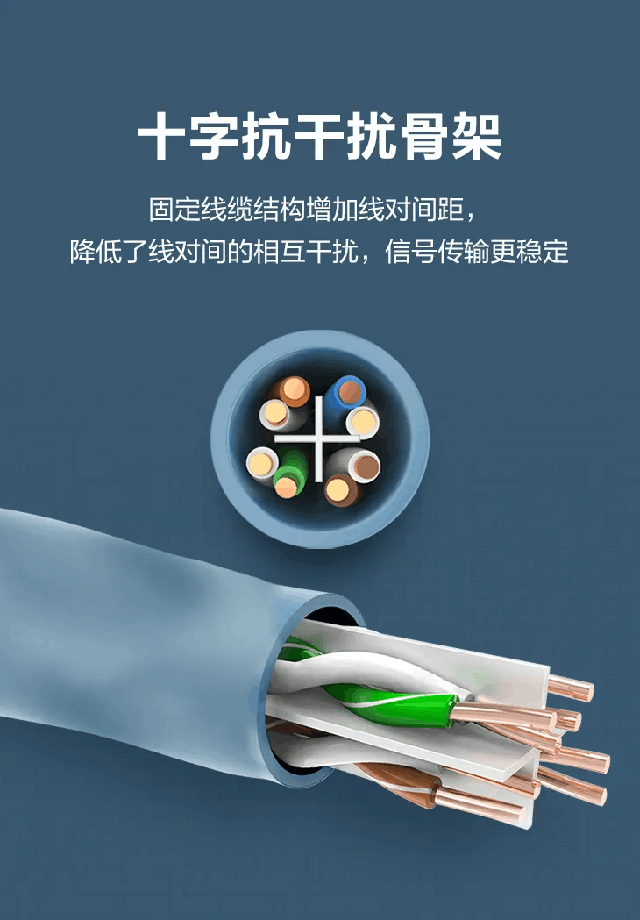 2、网线的8根导体两两对绞,各对绞线紧密均匀且绞距各不相同。绞距即每对线对相互缠绕的紧密程度,绞距控制紧密、准确则能有效抵消线对之间的信号串扰;同时更好地抵御外界的电磁波干扰,保障信号传输的稳定性,提升传输性能。