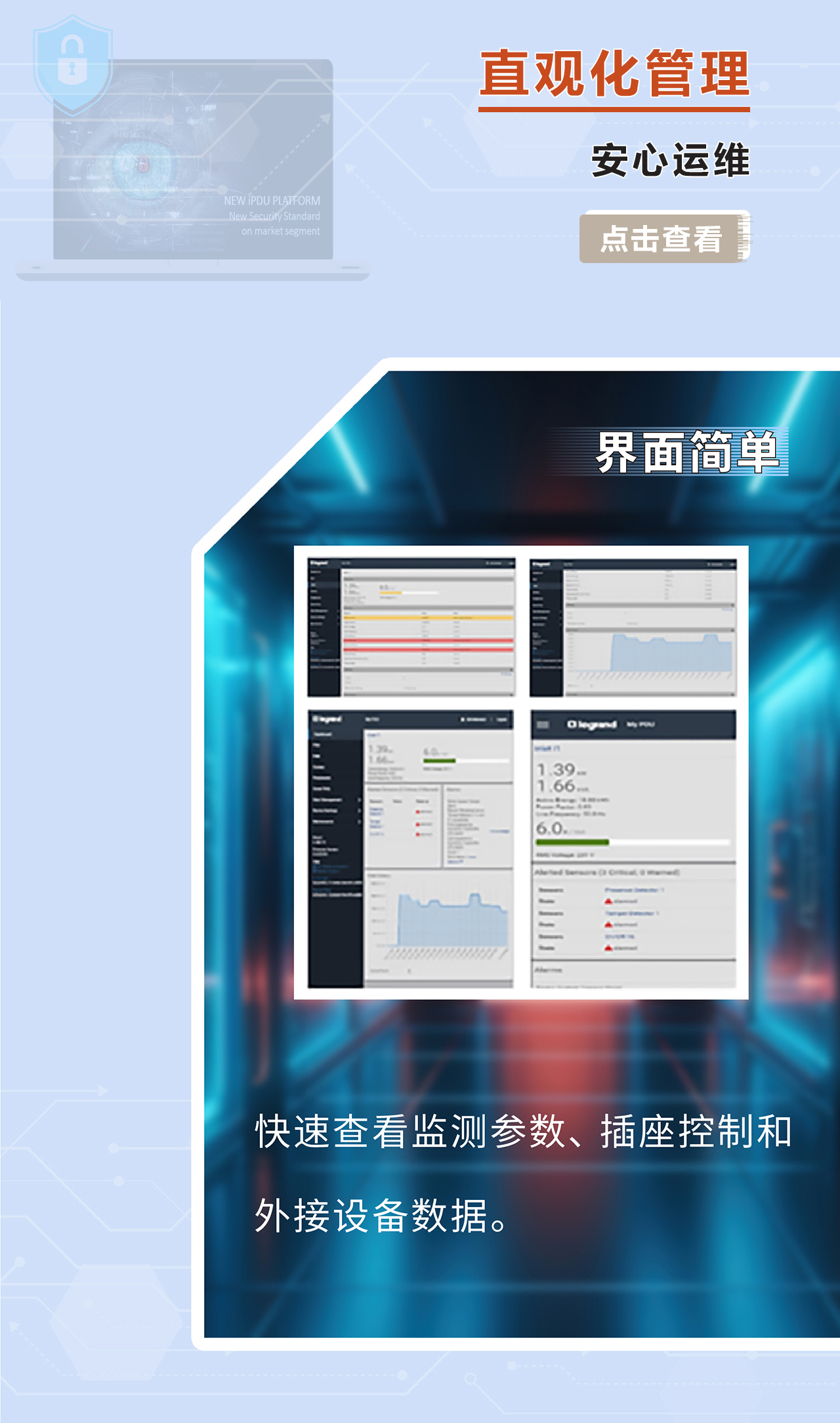 轻装上阵,焕新守护。实时、精准、全面的电力监测,为机房电力的可视化管理提供数据依据。